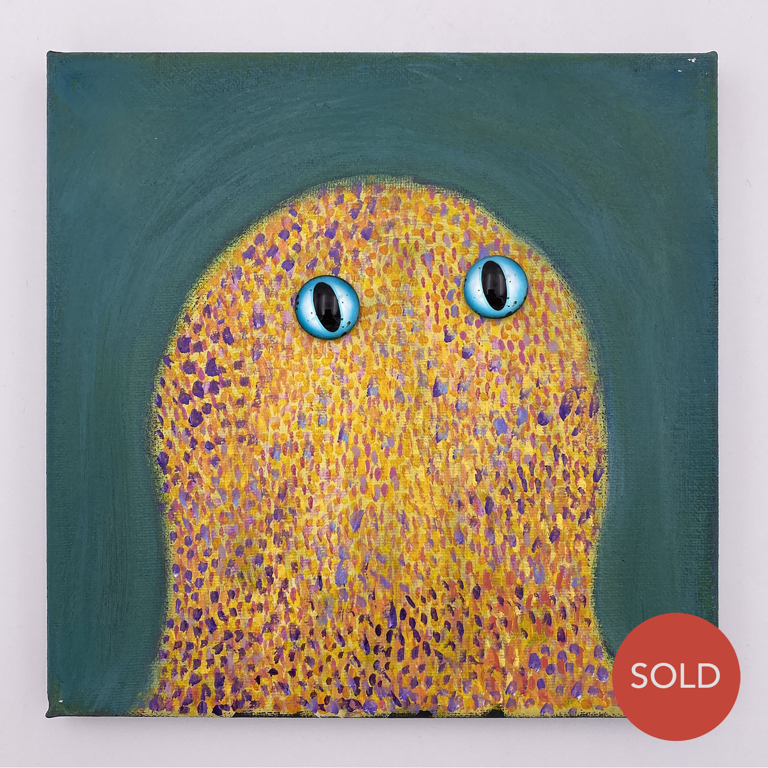 Acrylic & Gouache & Magnetic Eyes on Canvas. 8″ x 8″ x 0.75″