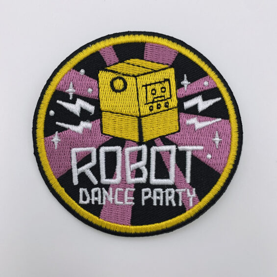 ROBOT DANCE PARTY Official Embroidered Iron-On CIRCLE PATCH!